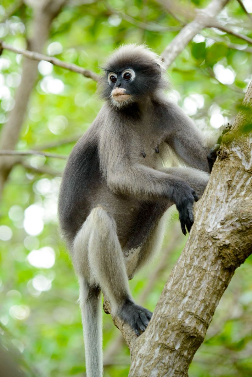 Südlicher Brillenlangur sitzt auf einem Baum in Thailand.