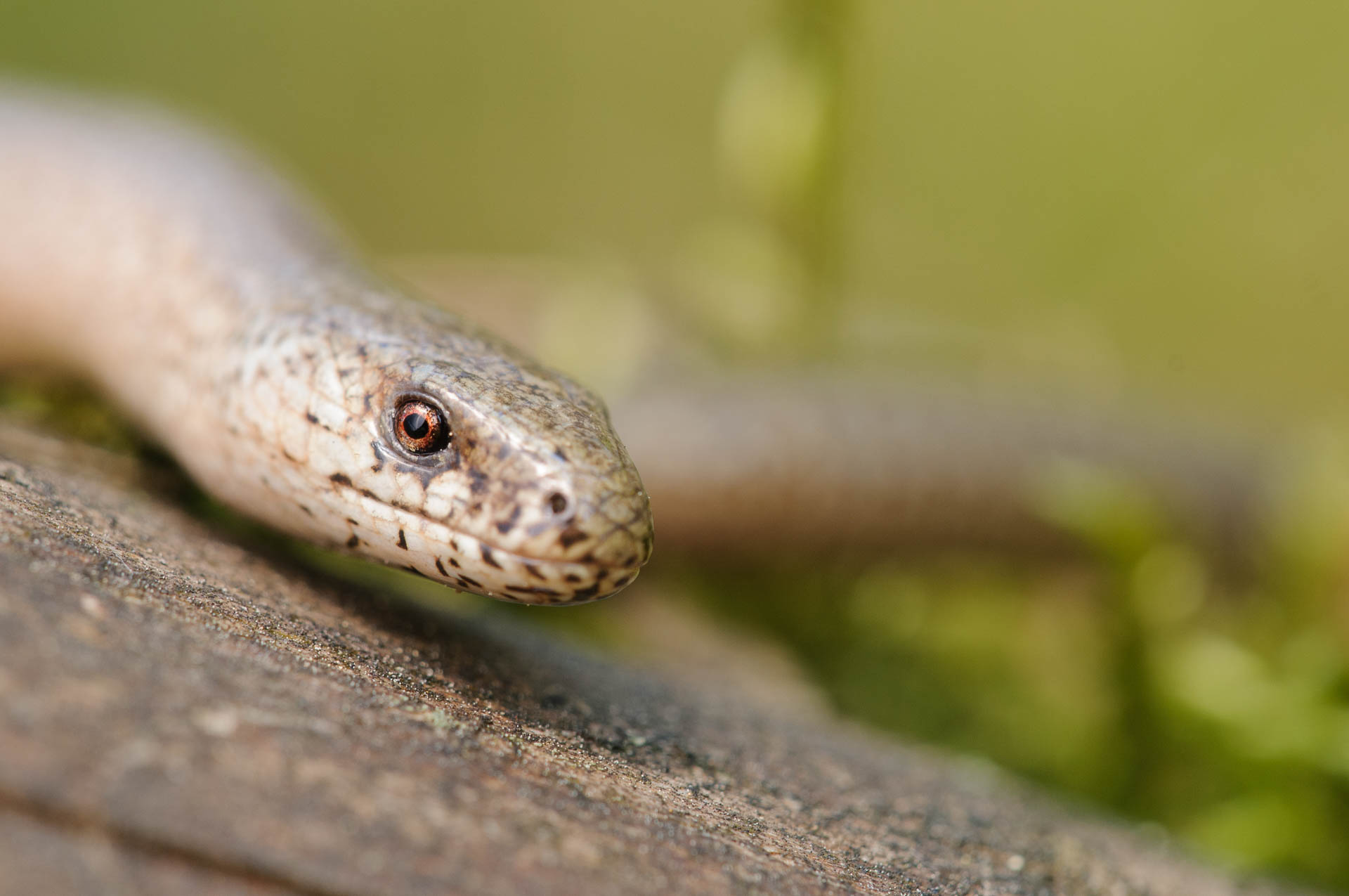 Blindschleiche auf einem Holzstamm in einer natรผrlichen Umgebung
