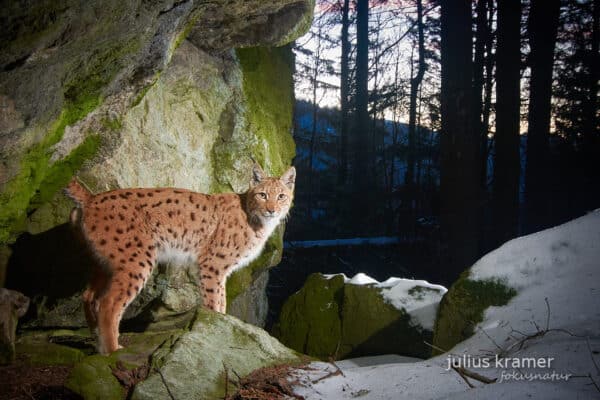 Ein Luchsmännchen durchstreift in der Novemberdämmerung sein Revier nahe dem Großen Arber – und gewinnt bei den Glanzlichtern der Naturfotografie 2026 die Kategorie „The World of Mammals”. Die Geschichte hinter dem Bild.